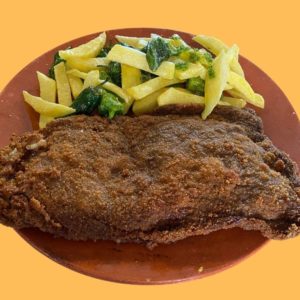Cachopo Asturiano con Salsa Cabrales, Patatas y Pimientos de Padrón Para Dos · 750gr