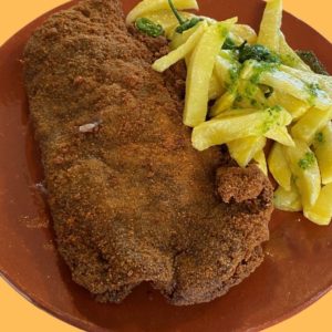 Cachopo Asturiano con Salsa Cabrales, Patatas y Pimientos de Padrón Para Dos · 750gr